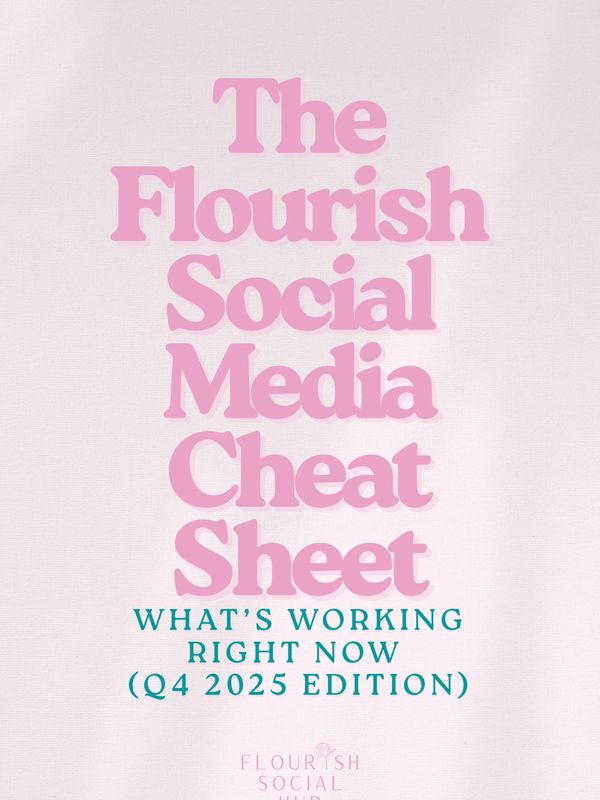 The Flourish Social Media Cheat Sheet is your free, easy-to-use guide packed with content ideas, seasonal prompts, and tips to help you stay visible and inspired online with what is working RIGHT NOW!